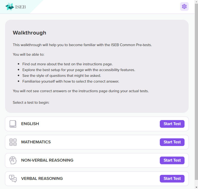 You can familiarise your child with the test experience for free, using our ISEB Pre-Tests Walkthrough. This allows pupils to experience the test player as it will be on the day, and to experiment with the accessibility features available to decide what will work best for them.